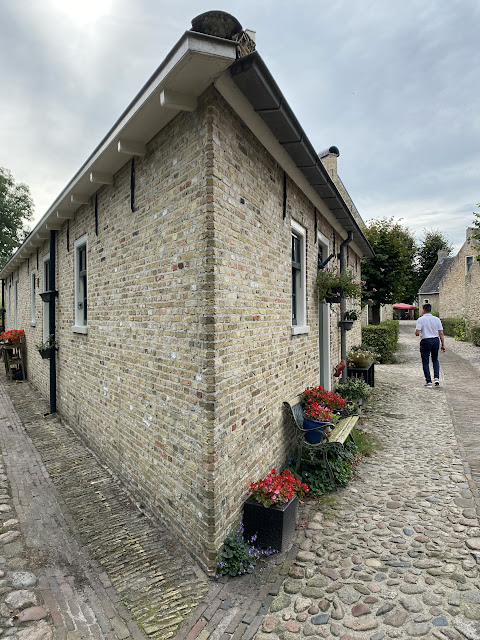 Rätt skönt att sova på båten efter en god middag och efter frukost var vi i land vid 9:30. Eftersom Henrik och Nathalie jobbade under veckan roade vi oss med att resa direkt till Nederländerna. Vi hade läst ett reportage i vår lokaltidning i våras som Göran la på minnet som tänkbar rutt för nästa Tysklandstur. Det blev en fullträff. Först åkte vi till lilla byn Bourtange som är känt för sin befästning. Från luften ser den ut som en stor stjärna och byns gamla delar ligger mitt i. Fästningen byggdes under sent 1500-tal för att skära av förbindelsen mellan Tyskland och staden Groningen som då hölls av spanjorerna. Själva byn har inte ens 500 invånare men två restauranger, några butiker och det var kul att se vallgravarna med sina branta sluttningar. Funderade över gräsklippningen men tror fåren hjälpte till med en del.